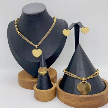 Nuovo Set di Gioielli a Forma di Cuore con Fiori, Stile Punk, in Acciaio Inossidabile con Pietra Naturale e Vetro Organico, 4 Pezzi