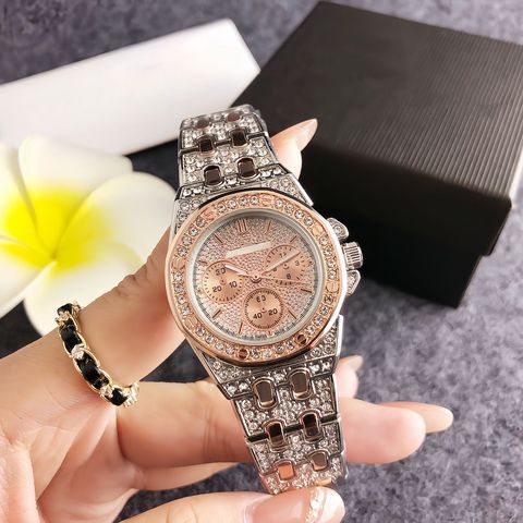 2025 Estilo Explosão Mulheres's Full Diamond Quartz Assista Três Olhos Seis Agulhas Liga Live Foreign Trade Cross-Border Charme